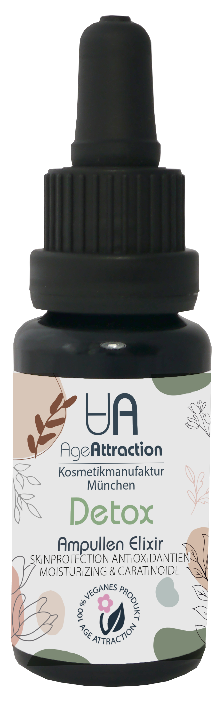 Detoxikačná ampulka sa vyznačuje svojím silným antioxidačným účinkom. Vďaka cenným účinným látkam ako sú „riasa Chlorelly” a „záhradná žerucha”, má silný účinok na pokožku a zabezpečuje jej dostatočnú vlhkosť.